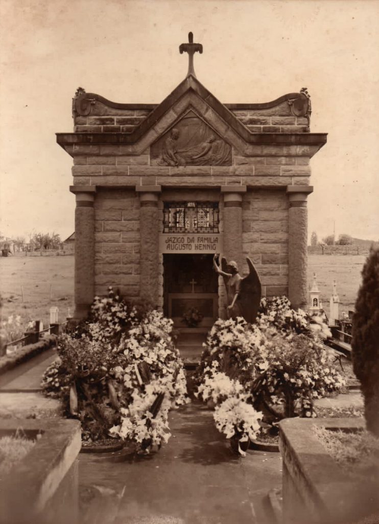 Augusto queria os familiares por perto, na vida e na morte. Em 1925, mandou construir o jazigo da família Hennig, no Cemitério Municipal. O projeto foi do arquiteto Jorge Hoelzel. O anjo de bronze em tamanho natural foi criado pelo escultor italiano Giuseppe Gaudenzi, o mesmo que confeccionou o Monumento da Independência, na Praça da Bandeira.