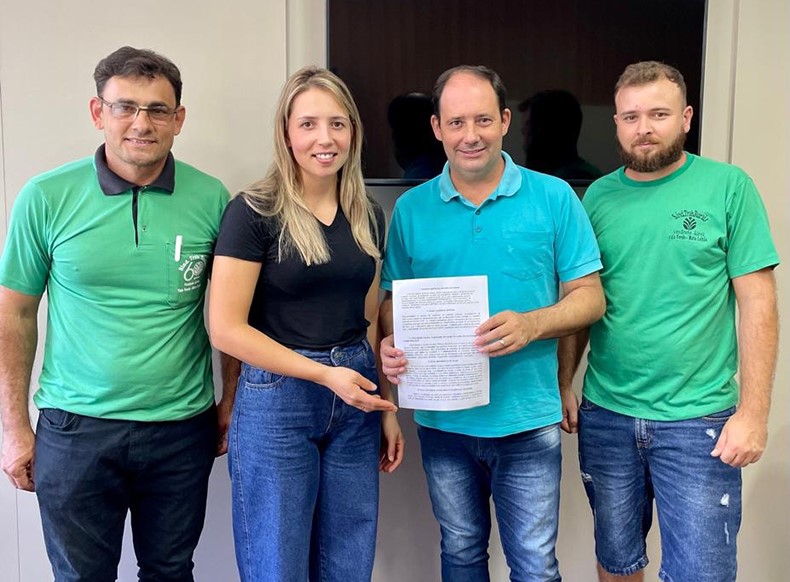 O prefeito de Venâncio Aires, Jarbas da Rosa, recebeu a agricultora Aline Palhares, 27 anos, e demais representantes do Sindicato dos Trabalhadores Rurais (STR), Gilmar de Oliveira e Marcelo dos Santos. A jovem venâncio-airense representará cerca de 200 produtores rurais de até 32 anos associados ao STR da Capital do Chimarrão.