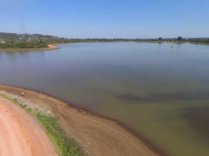 Embora a situação do Lago Dourado seja preocupante, com visíveis bancos de areia no entorno, o superintendente da Corsan explica que um grande volume de água ainda está concentrado no centro. “Tivemos que fazer um canal para direcionar a água ao centro do reservatório, que é onde está o maior volume. Em alguns pontos chega a até 6 metros de profundidade. Quando nas bordas, o máximo é de apenas dois metros.”