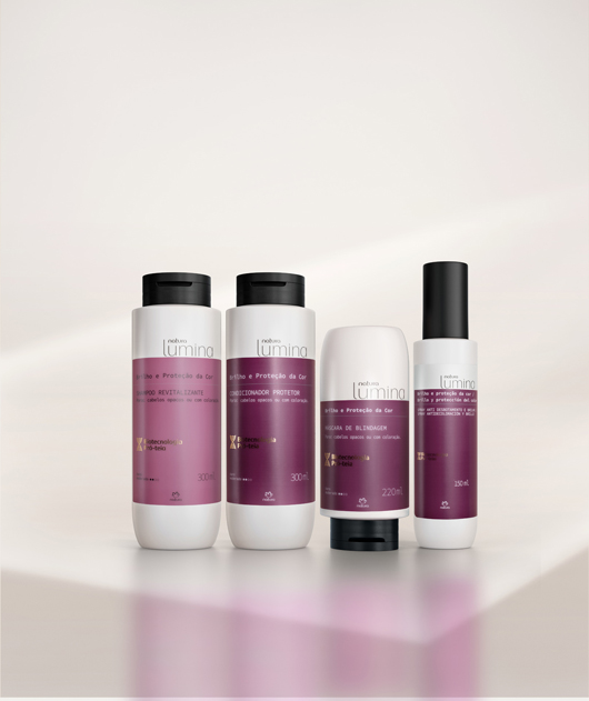Natura Lumina apresentou um novo sistema de tratamento para os cabelos tingidos e opacos. É a linha Brilho e Proteção da Cor, que promete prolongar a cor dos cabelos por até 10 semanas. Além disso, a fórmula garante maciez, facilidade no desembaraço, redução de fizz e três vezes mais brilho.