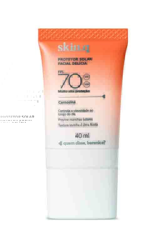 Não é porque o verão terminou que o cuidado com a pele acaba também. Pensando nisso, a Quem Disse, Berenice? lançou o protetor solar facial Delícia Skin.q. O produto chega ao mercado com textura ultrafluida, de fácil aplicação e absorção, além da sensação de frescor. Há, ainda, benefícios como redução de marcas solares e prevenção ao envelhecimento precoce. O FPS é 70.