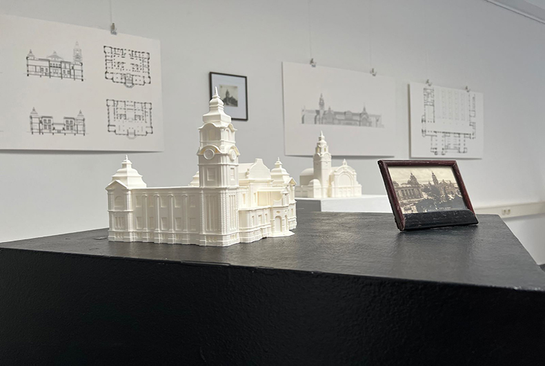 Maquetes de prédios e também projetos de Theo Wiederspahn compõem a exposição