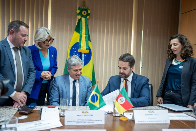 Leite falou ao ministro Paulo Teixeira sobre alterações legislativas que o governo estadual necessita para permitir a reservação de água em determinadas áreas, hoje proibida, e detalhou os pedidos de recursos no programa Supera Estiagem. “Hoje, mesmo que o governo amplie muito os recursos para a irrigação, e estamos preparando um plano muito robusto com os bancos públicos, o retorno que recebemos dos produtores é de que isso talvez não seja suficiente. A mudança na legislação é fundamental para que a reservação seja entendida como de interesse social”, explicou o governador.