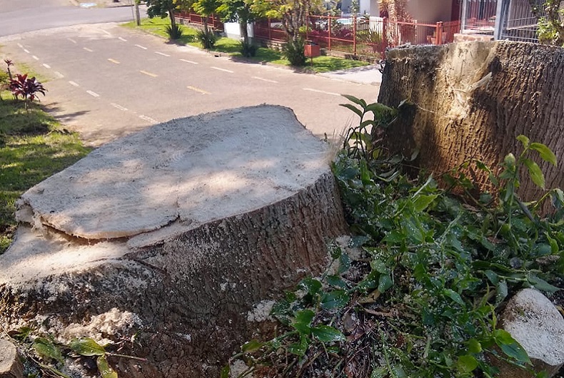 Um leitor fez contato com a Redação da Gazeta do Sul para denunciar e questionar a derrubada de um enorme umbuzeiro, árvore imponente, símbolo dos pampas, que estava ao lado da guarita na entrada do Parque da Cruz, no Monte Verde. Ele registrou o sumiço dessa árvore, sadia, da paisagem daquela área da cidade, onde há décadas era um ponto de referência, em corte realizado na semana passada.