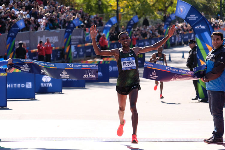 O etíope Lelisa Desisa e a queniana Mary Keitany foram os vencedores neste domingo, 4, da tradicional Maratona de Nova York, nos Estados Unidos. Desisa completou os 42.195 metros da prova com o tempo de 2h05min59, seguido pelo compatriota Shura Kitata (2h06min01), enquanto que o queniano Geoffrey Kamworor, campeão do ano passado, completou o pódio (2h06min26).