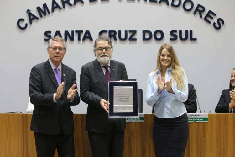 Em seu pronunciamento, o vereador Edmar Hermany destacou a ligação de Streck com Santa Cruz do Sul. “Trata-se de uma pessoa que marcou muito sua passagem pela cidade e que segue com laços intensos em Santa cruz do Sul. Uma pessoa muito relevante para todos nós”, destacou. Lenio usou a tribuna para lembrar algumas passagens pelo município, no qual teve uma atuação profissional, conseguiu sua formação e formou família. “Guardo laços profundos com Santa Cruz por onde eu vou e sou muito agradecido por este reconhecimento”, citou. O Diretorio Acadêmico do Direito da Unisc também fez a entrega de uma placa em sua homenagem.