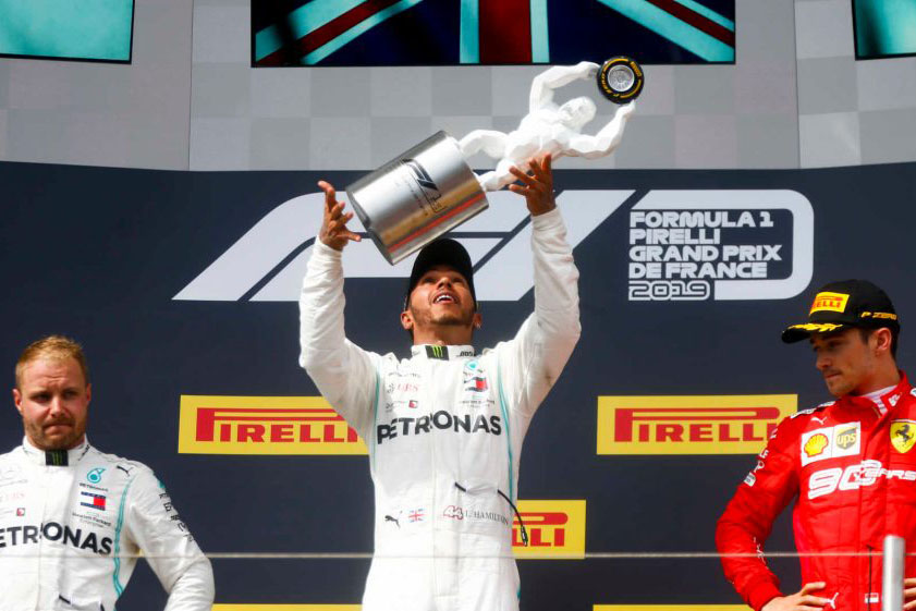 Lewis Hamilton cruzando a linha de chegada em primeiro: a cena mais vista neste ano na Fórmula 1 voltou a se repetir neste domingo. O piloto dominou a corrida em Le Castellet de ponta a ponta, e venceu o GP da França com tranquilidade, conquistando seu sexto triunfo em 2019, o 79º na carreira.