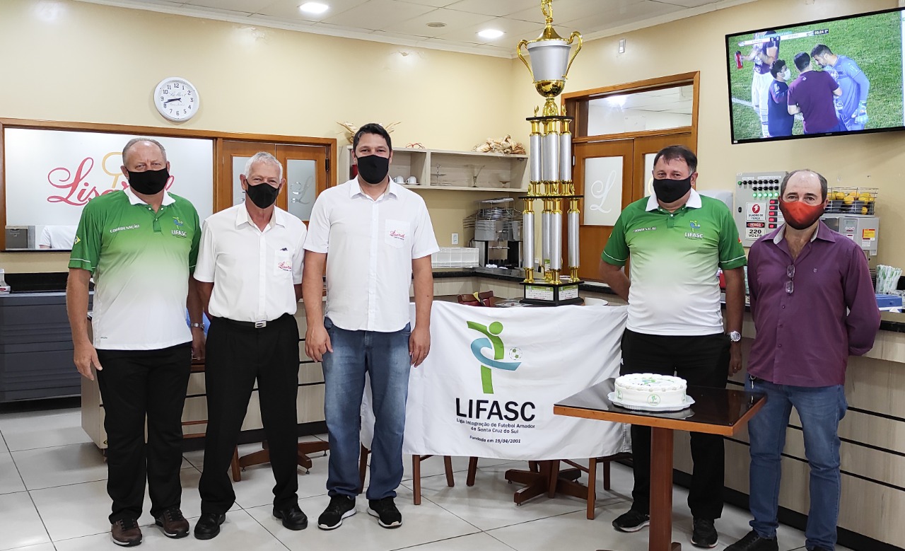A Liga de Integração do futebol Amador de Santa Cruz do Sul (Lifasc) estpa celebrando mais um ano de atividades nesta segunda-feira, dia 19 de abril. Para marcar a data, no sábado, a coordenação fez um ato simbólico junto à Lisaruth Delícias Caseiras, um de seus apoiadores no Campeonato Principal, que ainda está para ser encerrado – onde as finais ainda precisam ser disputadas.