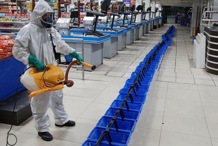No Supermercado Miller, a higienização lembra uma operação de guerra