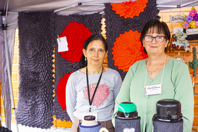Também foi oportunizada a chance de ter uma lembrança do evento, com a apresentação de trabalhos manuais feita pelo Grupo de Artesanato Municipal. Tânia Maria Heinen e Maristela Teresinha Petry estavam em um dos gazebos com os itens à venda. “Colaboramos com um presente para o sorteio durante a festa e estamos apresentando nosso trabalho”, contou Maristela, que reforçou a presença do grupo em outros eventos comunitários.