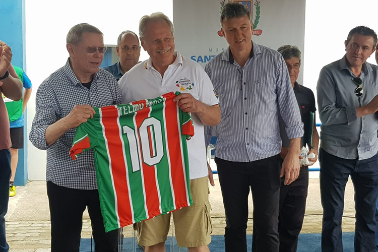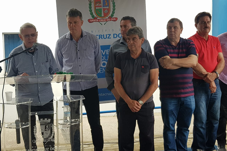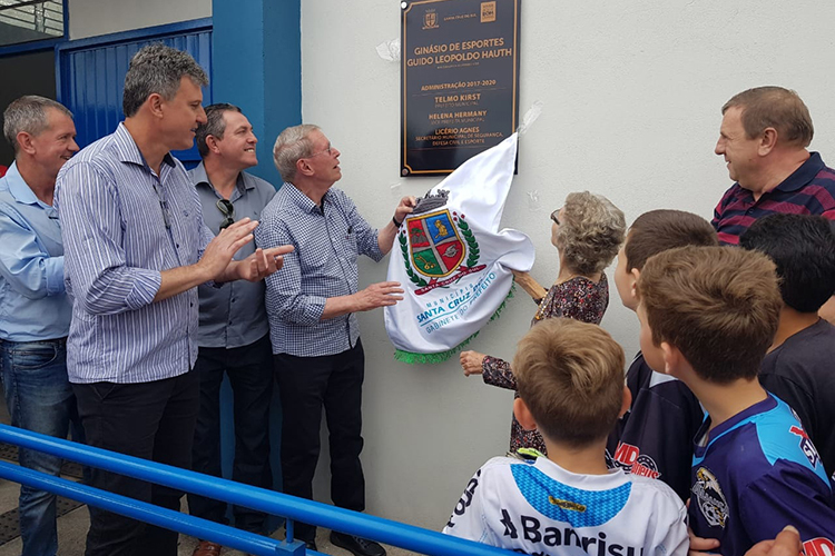 Acompanhado do subprefeito de Linha Santa Cruz, João Cassep, do secretário de Segurança, Defesa Civil e Esporte, Licério Agnes, e moradores, o prefeito Telmo Kirst fez o descerramento da placa e a abertura da fita no ginásio, simbolizando a entrega da obra. Durante a cerimônia, o presidente do Rotary Cidade Alta, Paulo Trinks, presenteou o chefe do Executivo com uma camiseta do Linha Santa Cruz. A manhã ainda foi marcada por atividades esportivas, com torneio de futsal da escolinha do Aliança e alunos do Projeto Craques da Bola, além do jogo do time da Associação de Moradores de Linha Santa Cruz (Amorlisc) com o Rotary Cidade Alta.