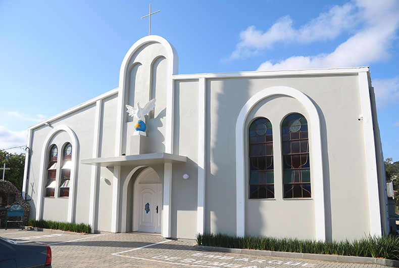 Em 21 de abril de 1967, começaram a ser construídos os primeiros pavilhões destinados às celebrações eucarísticas e às quermesses. A estrutura era de madeira, com piso de lajes. “Com o empenho e a dedicação das famílias, esses pavilhões foram inaugurados na festa do Divino Espírito Santo, padroeiro da comunidade, em 1968, com missa celebrada por dom Alberto”, escreveu padre Erno, em citação presente no livro.