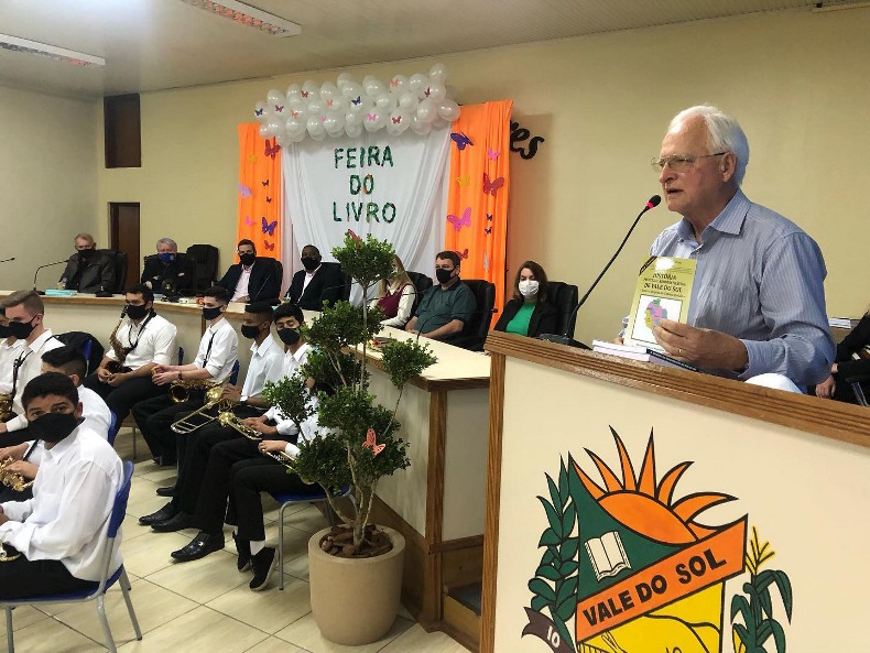O professor aposentado Ireno Finkler, um dos líderes do movimento de emancipação de Vale do Sol, fez o lançamento do livro História política e administrativa de Vale do Sol – Antes e depois da emancipação na noite dessa terça-feira, 5, durante a solenidade de abertura oficial da Feira do Livro itinerante. A obra organizada por Finkler, de 320 páginas, com apoio de diversos colaboradores, apresenta uma linha do tempo de Vale do Sol, além dos demais municípios que se formaram a partir do território de Santa Cruz do Sul, com aspectos históricos, políticos, culturais e fatos curiosos.