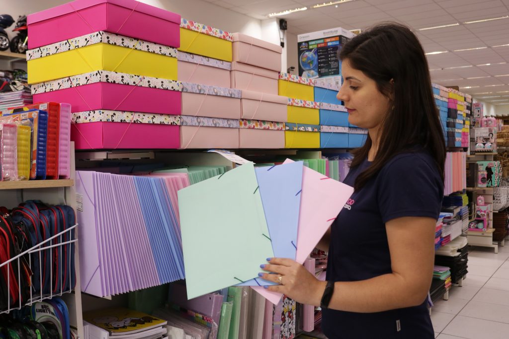 “Outro item que está com um desconto muito bom é o caderno de uma matéria da Tilibra, de 96 folhas, que custa somente R$ 4,99”, complementa. De acordo com a gerente, a moda entre os estudantes são os tons pastel. Mochilas de personagem também são muito vendidas no estabelecimento.
