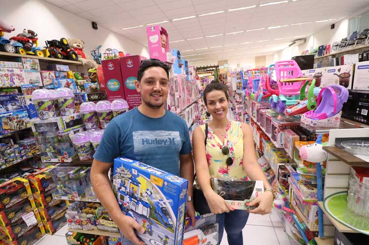 Cristian e Caroline procuravam presentes para quatro afilhados, encontraram o que queriam e planejam voltar para novas compras
