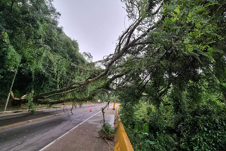 Além dos transtornos em residências, foi necessária a remoção de uma árvore no Acesso Grassel, que permanece interrompido desde a noite dessa terça, e uma queda de pedra na Rua Melvin Jones. Na RSC-471, uma árvore bloqueou a pista no trecho da reta de Rio Pardinho. Na manhã desta quarta-feira, 17, equipes da Prefeitura atuavam na retirada de galhos caídos durante o temporal também no Centro de Santa Cruz.