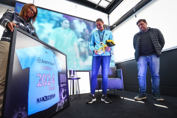 Ela recebeu girassóis e um quadro com a camiseta “Paris 2024” e seu nome estampado. A entrega foi feita pelo presidente Alberto Guerra e a diretora do Departamento de Futebol Feminino, Marianita Nascimento. Com maior visibilidade, Lorena despistou sobre uma possível saída do Grêmio. O contrato dela vai até o fim de 2025.