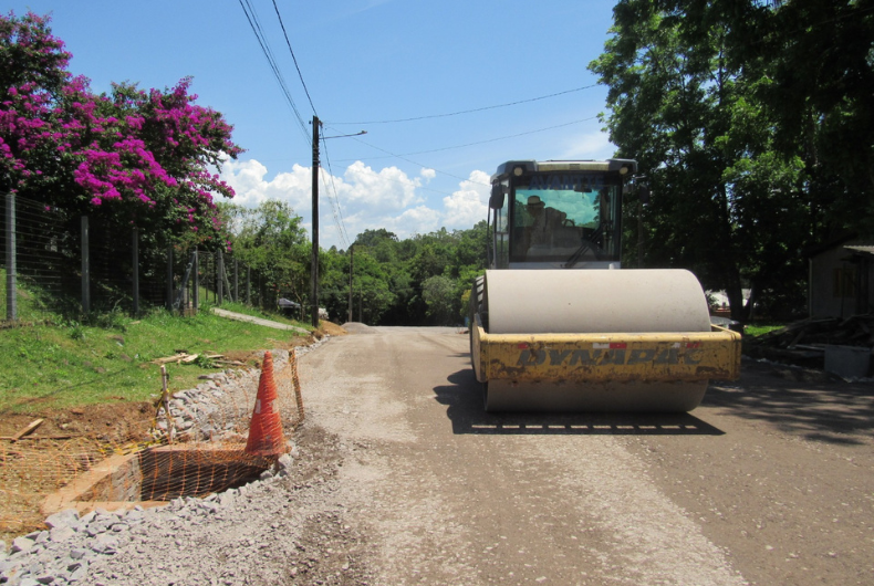 Iniciado há pouco mais de um mês, o trabalho de pavimentação de três vias do Loteamento Imigrante II, em Linha Santa Cruz, segue em ritmo acelerado. No total, são seis vias que receberão asfalto. Nesta sexta-feira, 28, as máquinas estão atuando na Rua das Cerejeiras, com o serviço de canalização e terraplanagem.