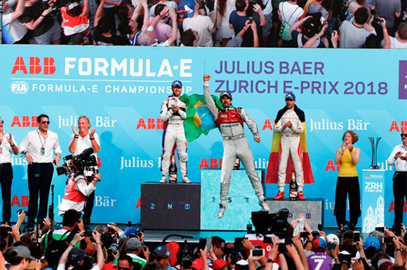 O piloto brasileiro Lucas di Grassi, da Audi ABT, venceu neste domingo, 10, a etapa de Zurique da Fórmula E, na primeira corrida de automóvel realizada na Suíça em 64 anos. O inglês Sam Bird, em segundo lugar, e o belga Jérôme d’Ambrosio, em terceiro, completaram o pódio.