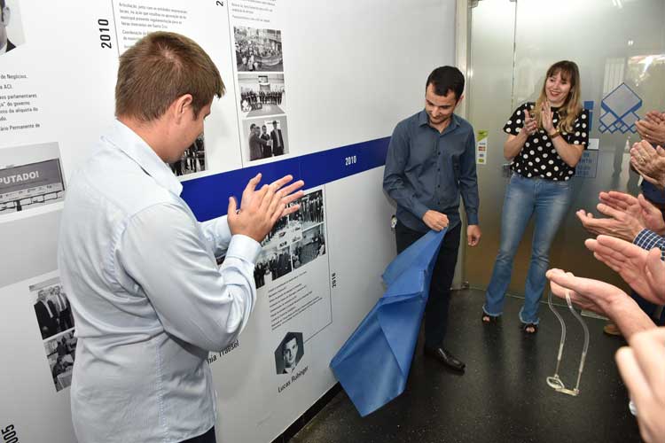 A passagem do empresário Lucas Rubinger pela presidência da Associação Comercial e Industrial (ACI) de Santa Cruz do Sul foi oficialmente marcada na história desta que é uma das entidades mais representativas do município. A foto de Rubinger e a descrição de seus principais feitos à frente da associação foram inscritos no painel da linha do tempo da ACI, que fica no corredor de entrada da sede, no Centro. O ato de descerramento ocorreu nessa terça-feira, 17, pela manhã.