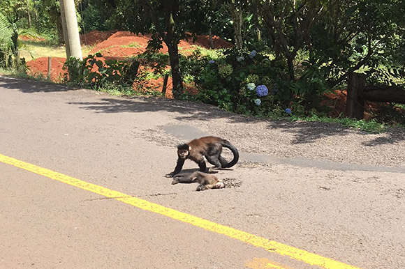 Para evitar que a mãe do macaco morto tivesse o mesmo destino, ele removeu os dois do local. Segundo o santa-cruzense, é comum a travessia de animais silvestres pela rua e os moradores tentam cuidar e ajudar, para que haja uma convivência harmoniosa. “Só quem viu de perto o desespero da mãe do macaquinho sente”, lamentou. Para Knabach, o problema se resume a excesso de velocidade dos motoristas e falta de um passa-fauna para os animais. “Colocaram uma placa de velocidade por aqui, mas falta mesmo é um redutor de velocidade.”