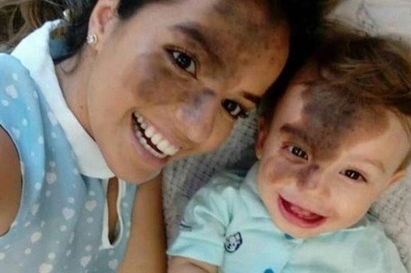 A empresária Carolina Giraldelli, de 26 anos, contou com ajuda da maquiadora Elaine Ricci para ficar parecida com o filho, Enzo Giraldelli, que possui uma mancha de nascença no rosto. A imagem dos dois juntos ganhou as redes sociais e repercutiu até na imprensa internacional.