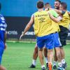 O curioso é que Maicon treinou normalmente neste sábado e se mostrou recuperado de um problema muscular que o afastou do segundo jogo das quartas de final, contra o Inter. No entanto, Renato optou por deixá-lo de fora, uma vez que este foi o primeiro trabalho com bola do jogador na semana.