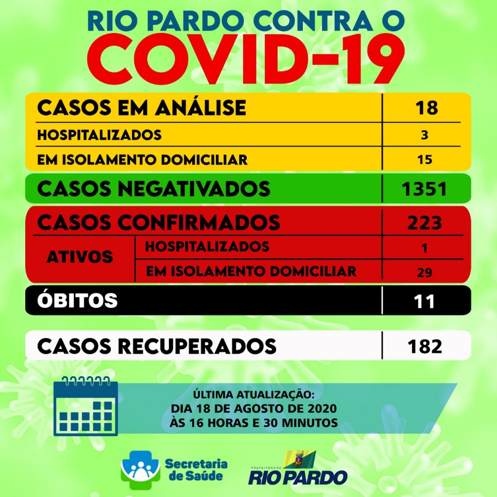 A Secretaria Municipal de Saúde de Rio Pardo confirmou mais cinco casos de Covid-19 nesta terça-feira, 18. Com isso, são 223 pessoas positivadas desde o início da pandemia. Os casos ativos, nesta terça, são 30. Destes, um paciente está hospitalizado e 29 estão em isolamento domiciliar.