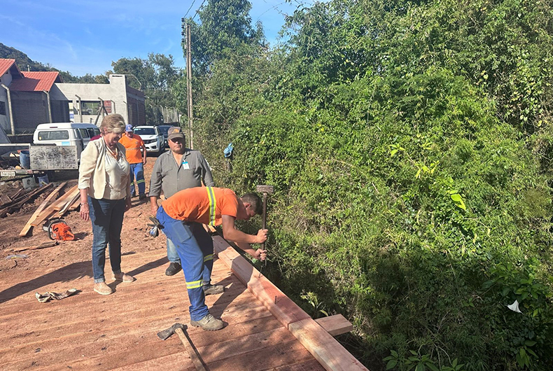 Nesta semana, a prefeita de Santa Cruz do Sul, Helena Hermany, acompanhou os trabalhos na construção de uma nova ponte em um dos acessos para a Rua Barão do Arroio Grande, próximo à Estrada Bruno Pritsch. A antiga estrutura estava muito danificada, correndo sérios riscos de desabamento.
