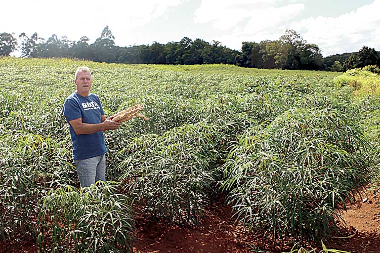 Produtor de mandioca há 13 anos, ressalta que a cultura é uma boa alternativa de diversificação para pequenas áreas e exige pouca mão de obra – basicamente adubação adequada, correção de solo e capina. Além disso, reforça a importância de rotacionar as áreas cultivadas para que o tubérculo renda mais e tenha maior qualidade. Por isso, hoje o agricultor arrenda lavouras próximas a sua chácara. “Não planto mais do que cinco anos em um uma mesma área.” A implantação do mandiocal desta safra começou entre o fim de agosto e início de setembro do ano passado.