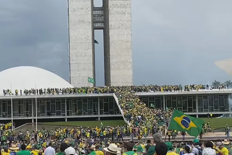Milhares de manifestantes e apoiadores do ex-presidente Jair Bolsonaro invadiram o Congresso Nacional na tarde deste domingo, 8, em Brasília. Os participantes do ato entraram em confronto com a Polícia Militar na Esplanada dos Ministérios e, com pedaços de paus e pedras, destruíram vidraças.
