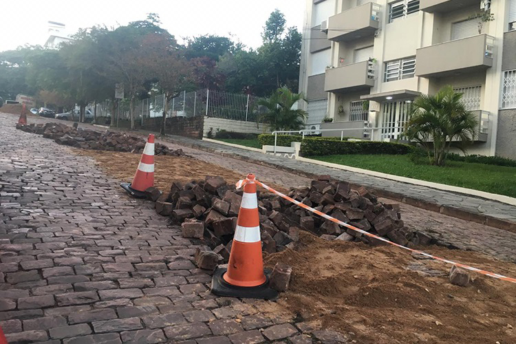 De acordo com o secretário municipal de Obras e Infraestrutura, Leandro Kroth, o calçamento do local está passando por manutenção devido aos recalques, e trata-se apenas de um serviço de conservação das vias públicas. Ainda segundo o secretário, a duração da intervenção no local depende do clima. Se o tempo seguir firme, a previsão é que o trabalho seja concluído na semana que vem.