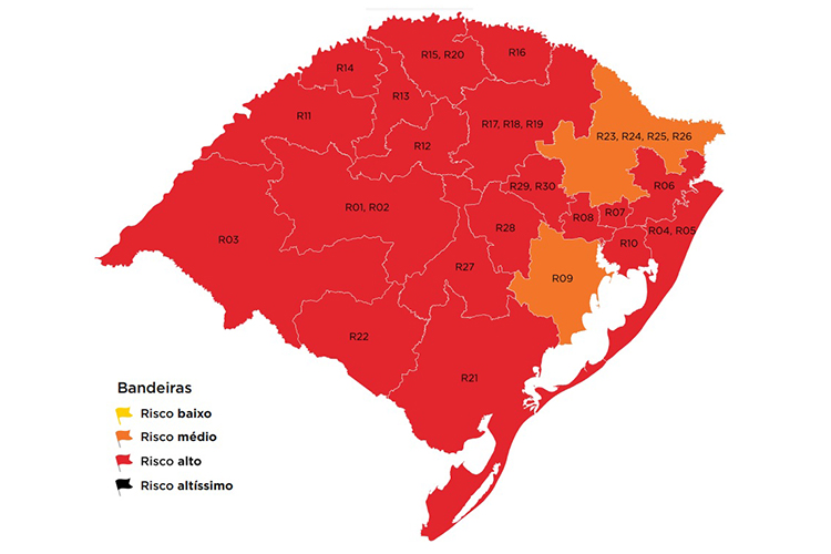 Das 21 regiões Covid, 19 estão em cogestão e podem adotar protocolos próprios, elaborados pelas respectivas associações regionais. Apenas as regiões de Guaíba (que teve a solicitação deferida nesta 37ª rodada) e Uruguaiana não aderiram à gestão compartilhada.