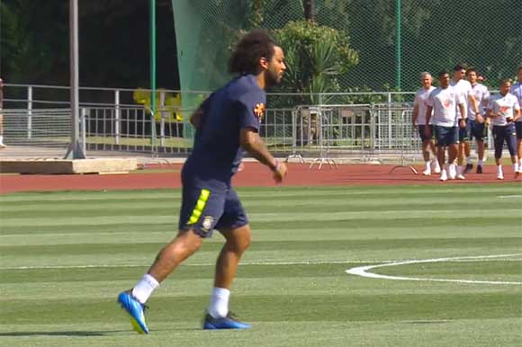 O lateral-esquerdo Marcelo treinou normalmente neste sábado, em Sochi, mas ainda não tem escalação garantida na seleção brasileira para o jogo com o México na próxima segunda-feira, às 11 horas (de Brasília), em Samara, pelas oitavas de final da Copa do Mundo da Rússia. Foi sua primeira atividade com bola depois do espasmo na coluna sofrido durante a partida contra a Sérvia. A comissão técnica está otimista em relação ao aproveitamento do jogador, mas o médico Rodrigo Lasmar prefere ser cauteloso.