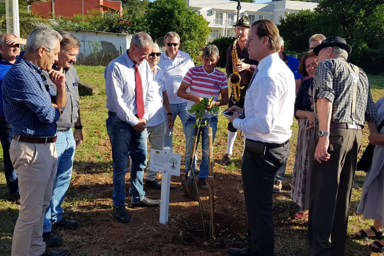 “Aqui onde foi descerrada a placa e plantado o carvalho foi a primeira construção pública, digamos assim, a escola. Tem a ver com aquela coisa que primeiro fizeram, que era a tradição dos imigrantes alemães: a educação e a religiosidade. Durante a semana era escola e no fim de semana igreja”, explicou Paulo Trinks, presidente da comissão organizadora dos festejos em comemoração aos 170 anos da imigração alemã em Santa Cruz.