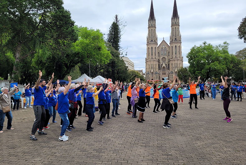 Aulão de dança movimentou os participantes, que esbanjaram alegria. Entidades e empresas também ofereceram serviços no local | Foto: Iuri Fardin