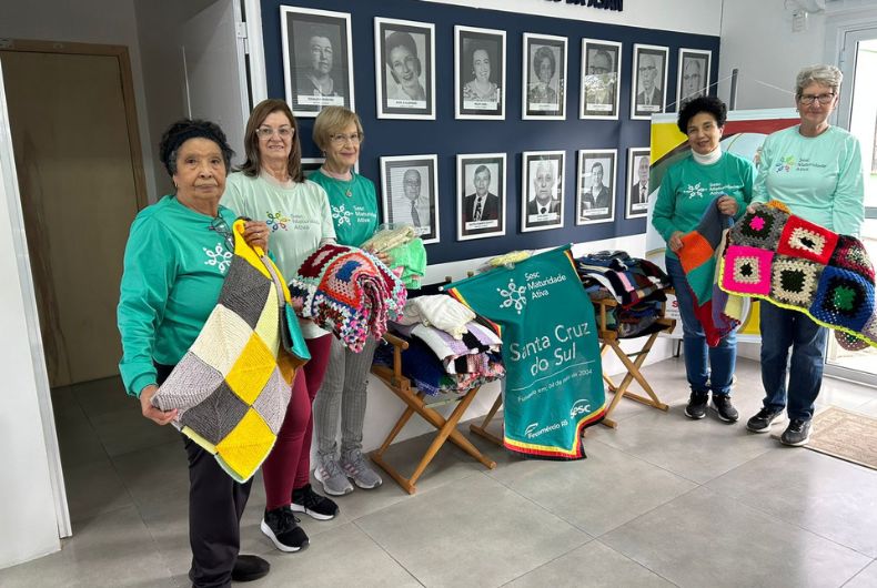 O grupo “Formiguinhas”, da Maturidade Ativa do Sesc Santa Cruz do Sul, realizou a entrega de 40 colchas de lã aos residentes da Associação de Auxílio aos Necessitados e Idosos (Asan). Os membros do grupo, além dos encontros quinzenais, dedicam-se em suas casas à confecção de colchas, roupinhas de bebê, polvos para prematuros e outros itens, tudo com foco no bem-estar social.