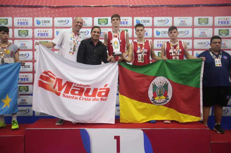 Representado pelos alunos Gabriel Morais, Felipe Keller e Guilherme Wagner, o Colégio Mauá sagrou-se campeão brasileiro de basquete escolar 3×3 na Série Prata. O evento, organizado pela Confederação Brasileira de Desporto Escolar (CBDE), ocorreu na semana passada, em Salvador. “É uma conquista muito importante, de atletas da nova geração do basquete santa-cruzense”, salientou o diretor geral do educandário, Nestor Raschen.