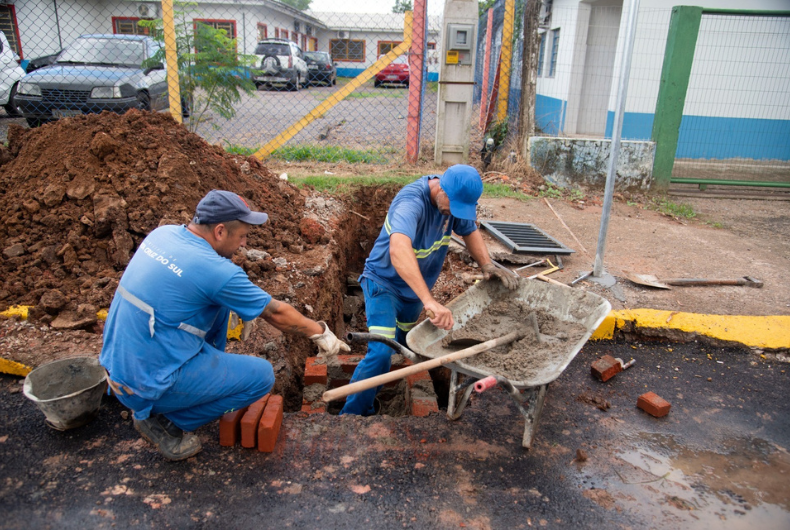 Nesta sexta-feira, 12, servidores da pasta executaram mais uma boca de lobo, desta vez, em frente a escola de educação infantil. Outras cinco foram construídas, com a utilização de cerca de 40 canos para o conserto da tubulação pelo lado das escolas.
