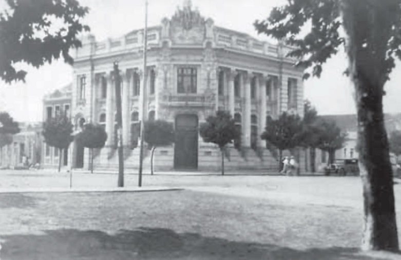 O leitor Leomar Ernesto Bulow nos encaminhou foto de 1926 do Banco Pelotense (hoje Casa das Artes Regina Simonis) onde aparece a esquina da Floriano com a Júlio de Castilhos, trecho em remodelação. Ela revela as calçadas com árvores de pequeno porte, gerando pouca sombra. E na esquina onde agora fica o Quiosque, aparece o tronco de um plátano.