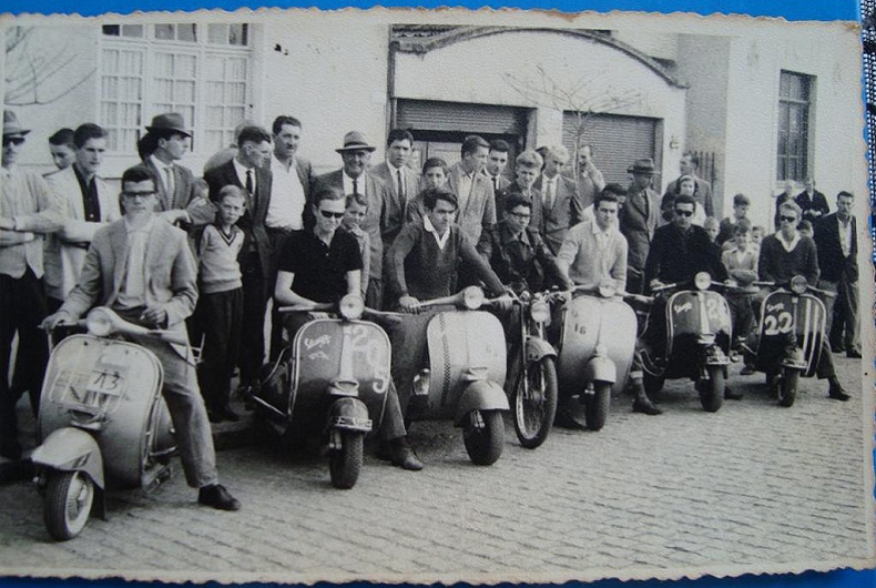 Pilotos, com lambretas, vespas e motociclos disputavam as tarefas das ginkanas na Rua Marechal Floriano | Foto: Arquivo da Gazeta do Sul