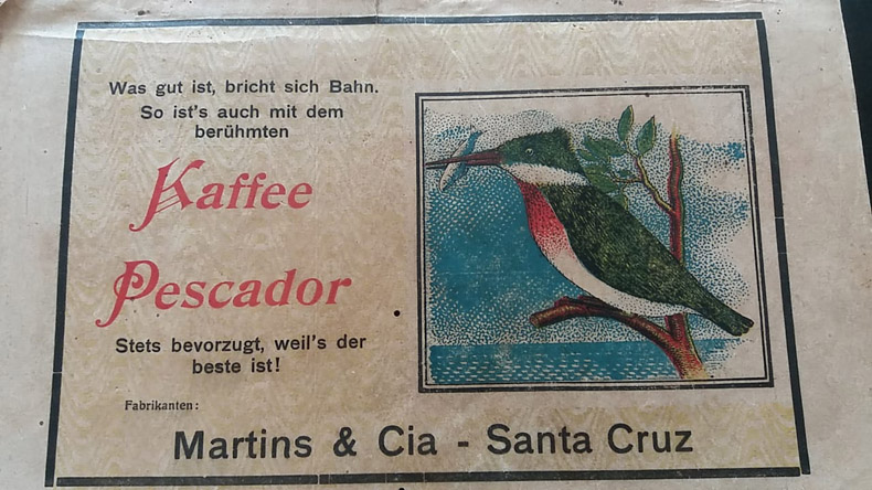 Moradores também lembram do afamado Café Pescador, cuja sede ficava na Rua Ernesto Alves. Ao menos duas ou três vezes por semana, na região no entorno da Viação Férrea, podia-se sentir o perfume do café sendo torrado. Nas páginas da Gazeta, encontramos uma propaganda em língua alemã do produto.