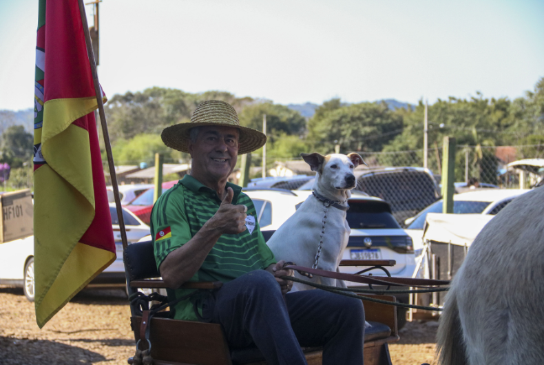 Outra atração do dia em Rio Pardinho foi a charrete de seu Ademir Rodrigues Machado, de 73 anos. “O pessoal adora. Trouxe ao evento e muitos querem dar um passeio”, disse o aposentado, que mora na localidade, e ficou conhecido por realizar de forma voluntária a coleta de materiais recicláveis à margem da RSC-471.