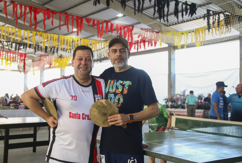 Em um dos espaços dentro do ginásio onde ocorreu a venda dos produtos foi realizado um torneio de apresentação com dois santa-cruzenses que vão participar, em 2024, da Copa do Mundo de Ping-Pong, a ser organizada no México, de 4 a 6 de janeiro.