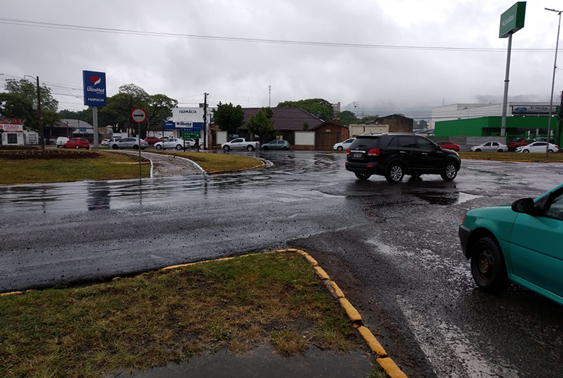 Uma forte pancada de chuva atingiu a área central de Santa Cruz do Sul na manhã desta terça-feira, 14. A precipitação, que durou alguns minutos por volta de 8h30, chegou a ter intensidade de 90 milímetros por hora, segundo dados da Estação Meteorológica da Gazeta. Em vários pontos do Centro houve alagamentos, especialmente em esquinas.