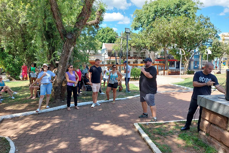 No início da tarde desta sexta-feira, 17, professores municipais se reuniram na Praça da Bandeira, no Centro de Santa Cruz do Sul, para uma manifestação pacífica. Os profissionais vêm debatendo com a gestão municipal o reajuste salarial da categoria, mas ainda não houve consenso.