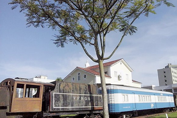 O vagão em questão é aquele que fica ali na Estação Ferroviária. Ou melhor, nos fundos do Centro de Cultura Jornalista Francisco José Frantz, junto à Praça Siegfried Heuser, que hoje em dia até maria-fumaça (a loco motiva!) tem.