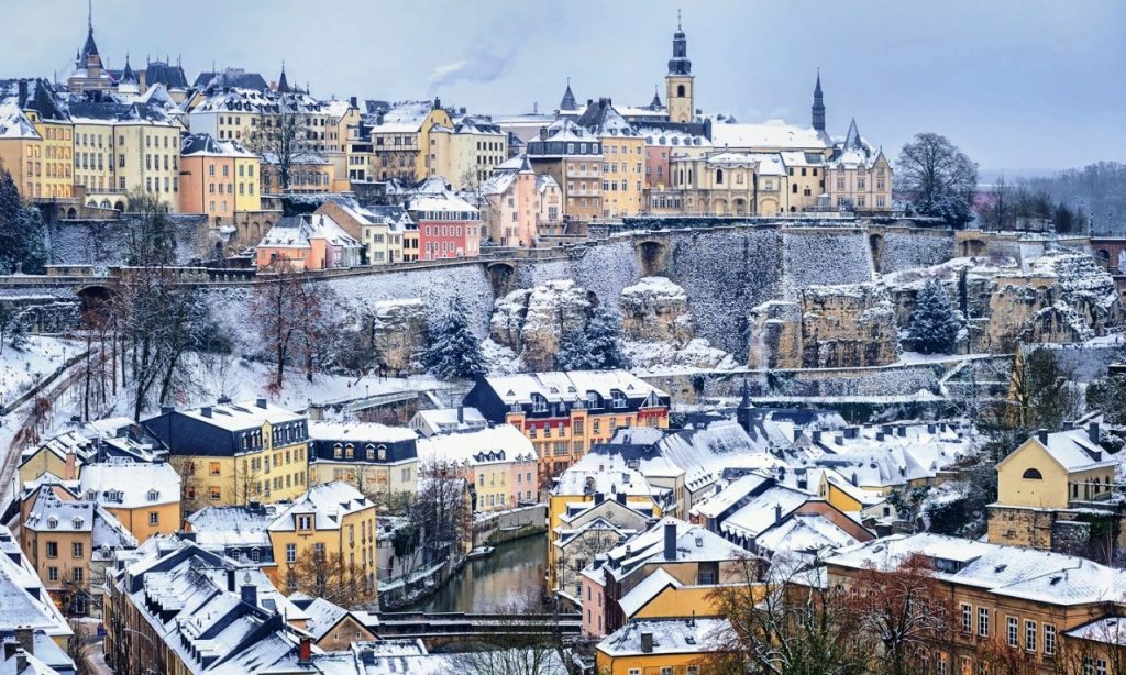 Cenário invernal da capital de Luxemburgo, com um charme extra trazido pela neve