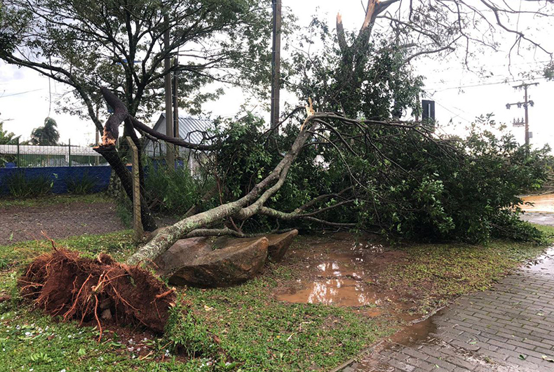 Na região oeste do Estado, também nesse sábado, um tornado causou danos menores em propriedade rural do município de São Martinho da Serra.