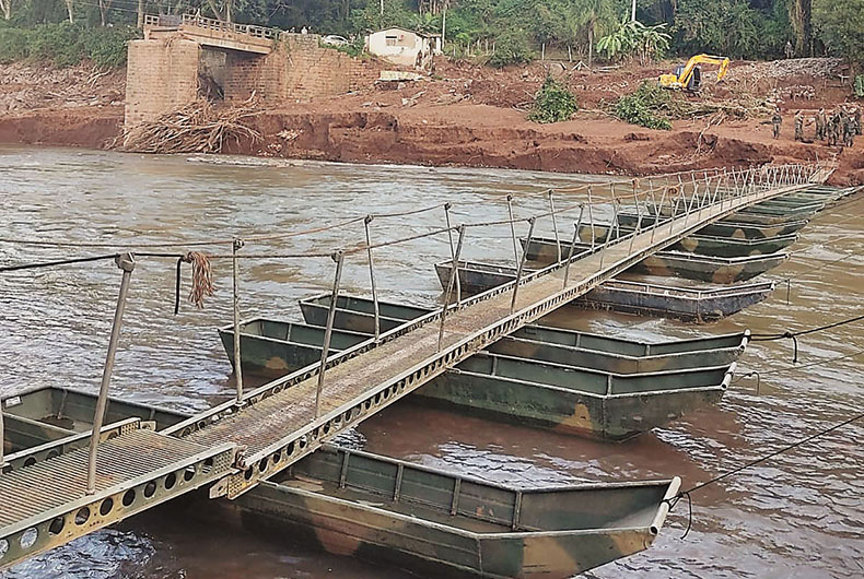 Militares do Exército Brasileiro realizaram nessa terça-feira, 14, a instalação de uma passadeira para pedestres sobre o Rio Pardinho, em Alto Sinimbu, no interior do município de Sinimbu. A alternativa permite a passagem de moradores das localidades de Linha Desidério, Linha Rio Grande, Alto Sinimbu e Bismark, que até então estavam totalmente isoladas.